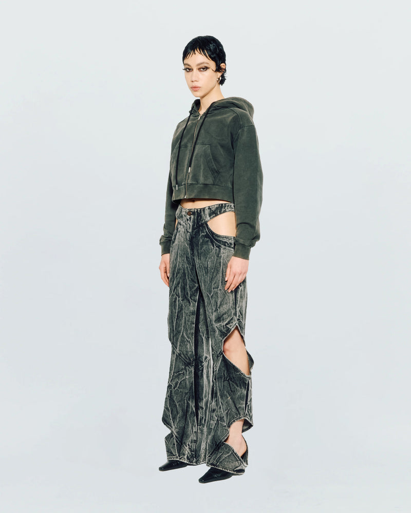 CUT-OUT DENIM PANTS